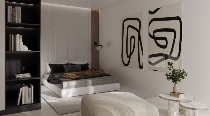 室内采用现代极简风格,兼顾优雅与舒适。