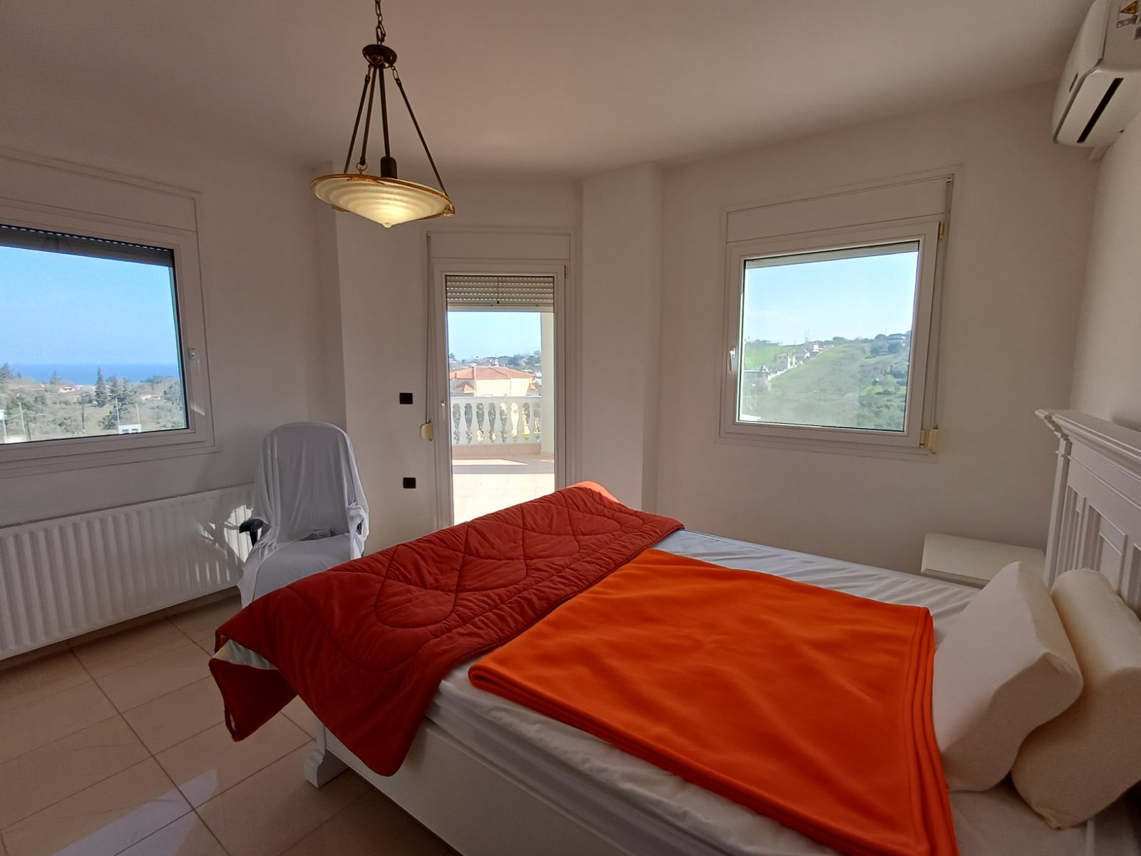 出租 2-层别墅面积 320 平方米 位于塞萨洛尼基. Semi-first floor一间卧室, 客厅, 一间厨房, 淋浴间. 一楼3 卧室, 淋浴间. 别墅 具有 正面布局 该物业享有 壮丽的全景,面向大海,面向山脉,面向城市。也有 家具, 空调, 花园, 草坪, 供暖器, 报警器, 库房.